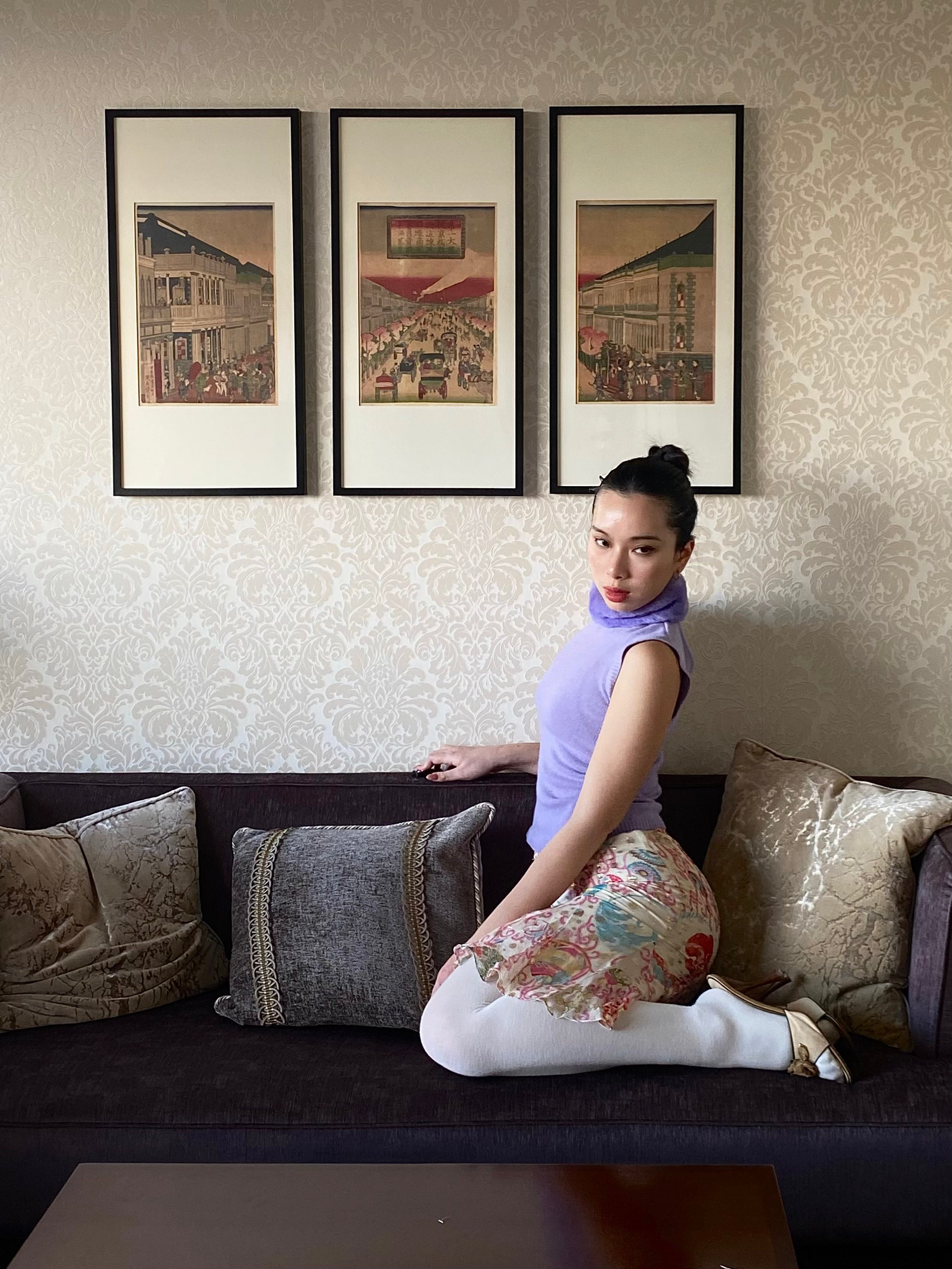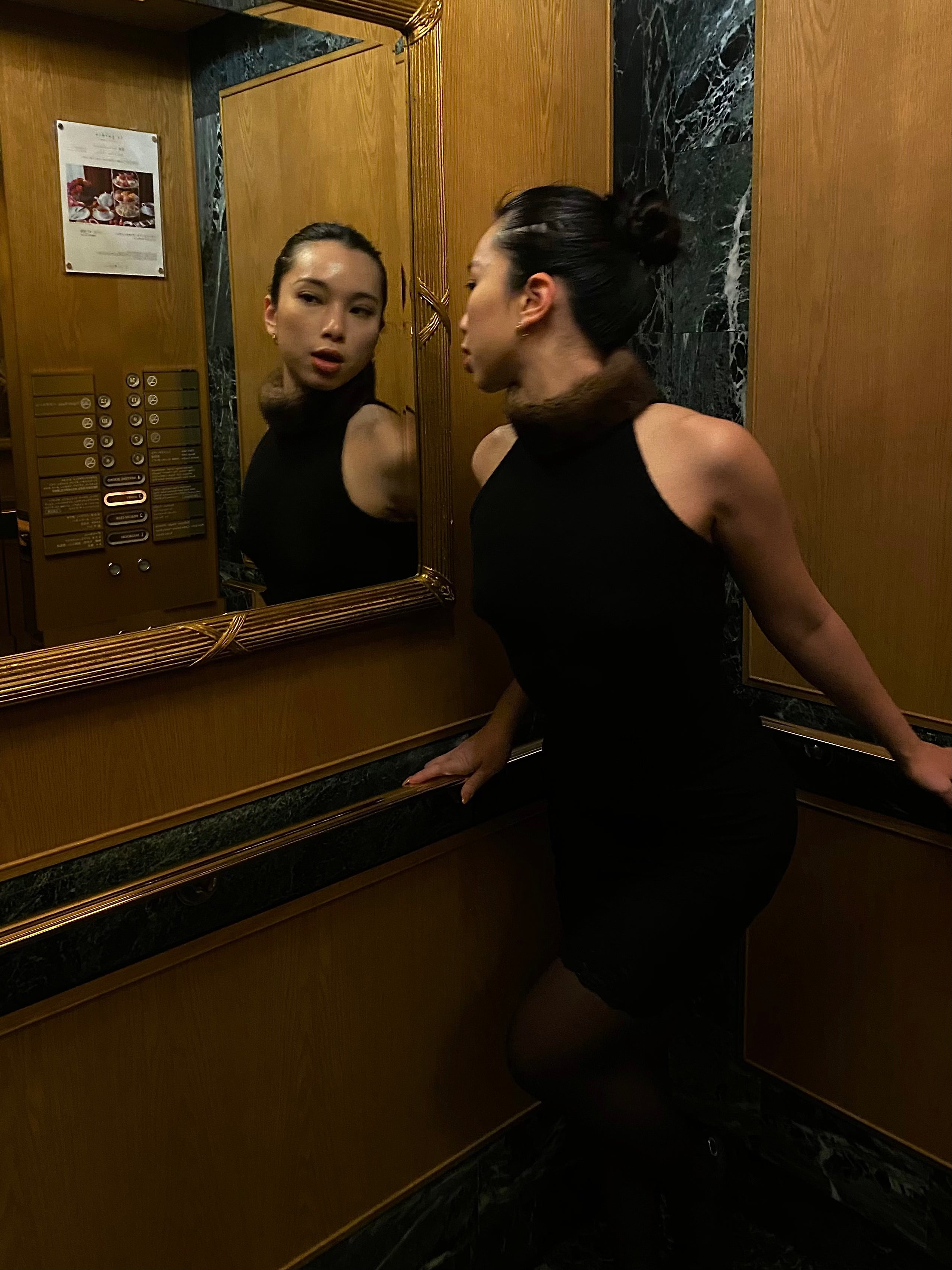 Blugirl Blumarine Lilac Fur Collar Sleeveless Top