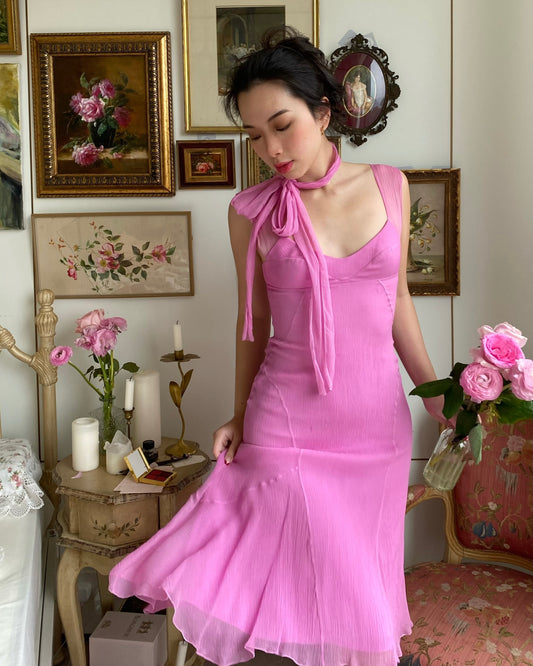 Blumarine 2004SS Pink Floral Silk Chiffon Dress