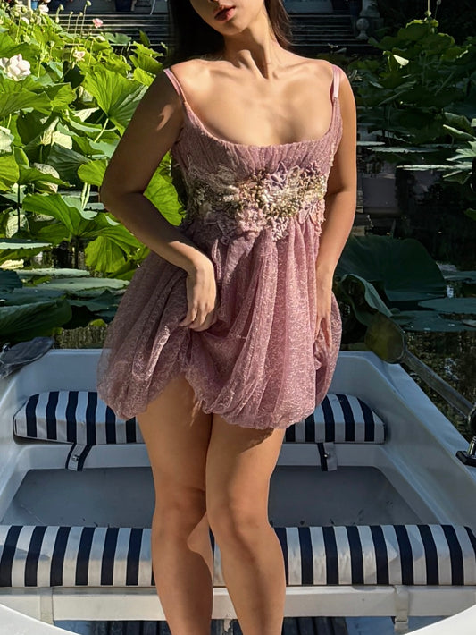 Ema Savahl Pink Corset Floral Appliqué Dress
