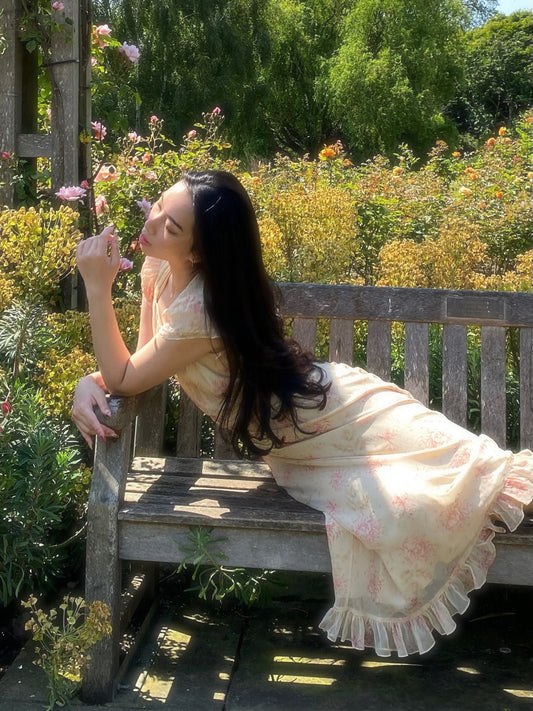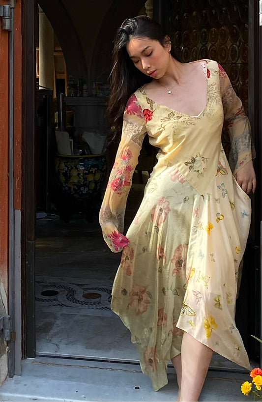 Ralph Lauren Light Yellow Bell Sleeved Garden Silk Dress