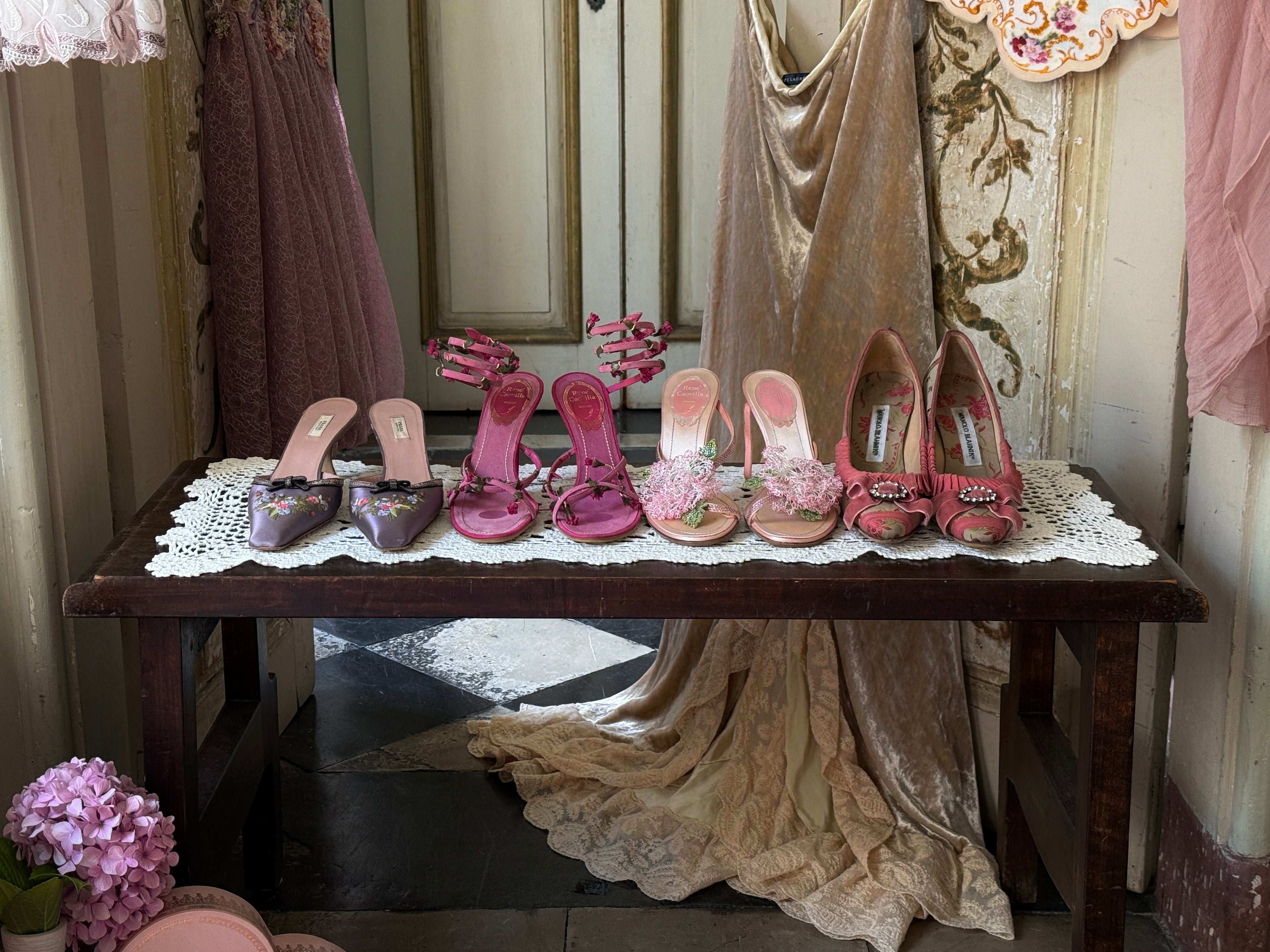 Rene Caovilla Ankle Wrapped Rosebud Heels