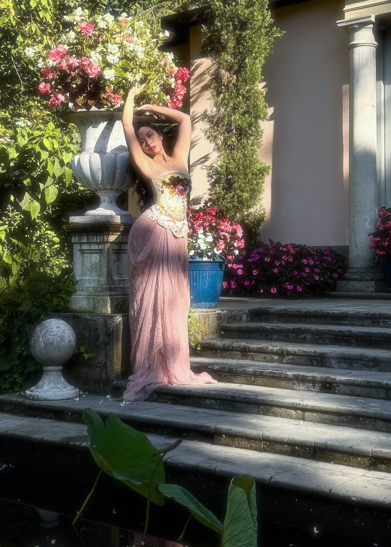 Blumarine 2004SS Pink Lace Top and Silk Chiffon Skirt