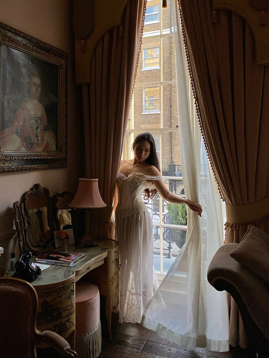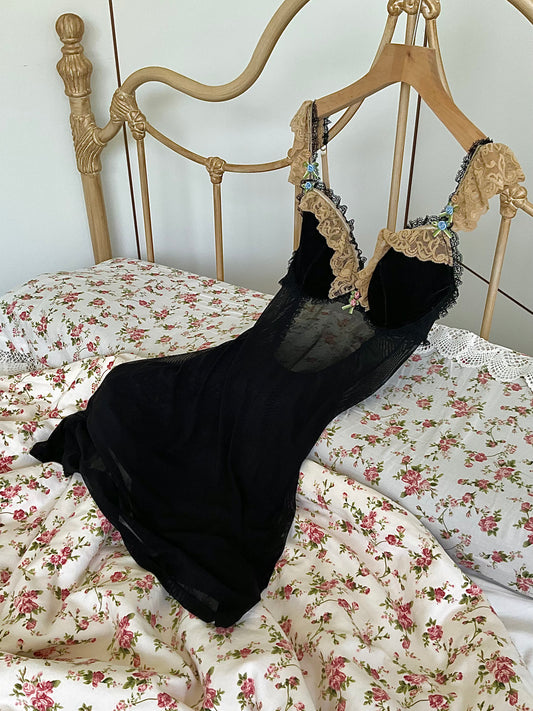 Black Velvet And Mesh Babydoll With Cream Lace Trimmings