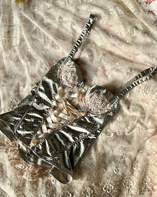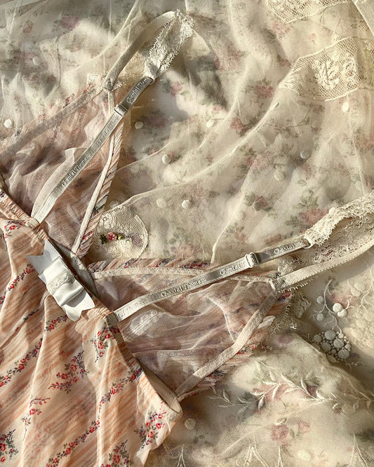 Christian Dior Light Grey Lingerie Set With Floral Embroidery