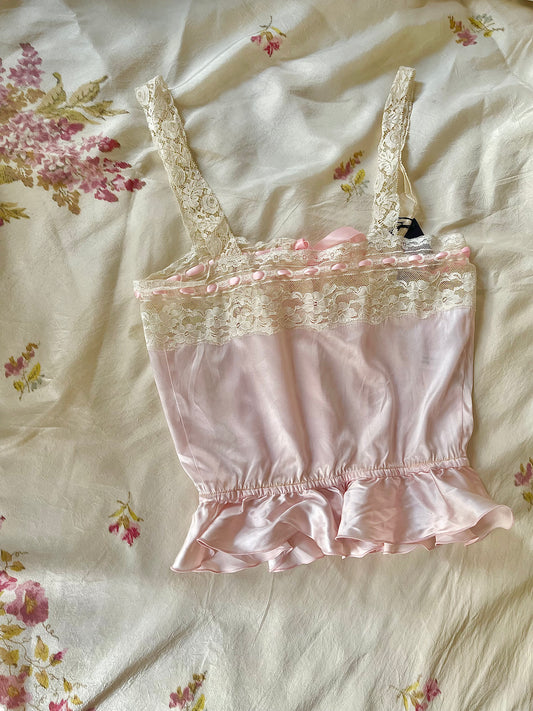 Chantal Thomass Cream And Pink Rose Embroidered Lace Corset